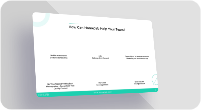 How Can HomeJabHelp Your Team? Mobile + Online On 24hr Ownership of All Media Content for Demand Scheduling Delivery of All Content Marketing and Social Media Use No Time Wasted Vetting Each Increased Order Volume Photographer -Guaranteed High Coverage Areas Pricing Discount Quality Content www.homejab.com 3